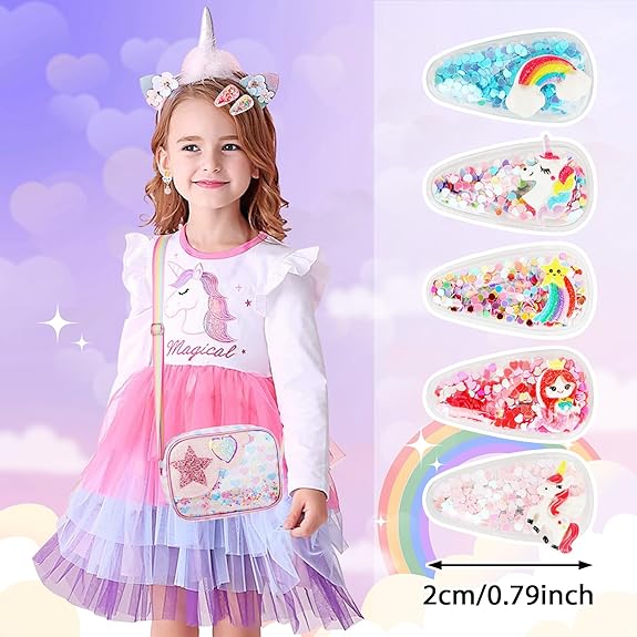 - 【Cute & Stylish Design】Our pink handbag designed with sparkling glitter sequin stars and cute hearts in bright colors, rectangle shape rainbow bag with rainbow colors strap, which is adjustable and durable. This mini crossbody bag will be perfect match with any dress or casual, suitable for 4-12 years old girls, ideal fashion accessory.